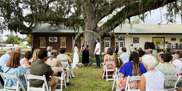 Welcome to Freedom Station Park, a timeless setting nestled under majestic live oaks beside Frostproof's historic train depot. Whether you’re planning an intimate wedding or a lively community gathering, this picturesque venue blends history, art, music, and natural beauty into one unforgettable backdrop. Inside the Depot, you’ll also find Mister Chris’ Coffee Gallery—a community hub filled with fresh-roasted coffee, local art, antiques, and music that brings even more charm to your event.